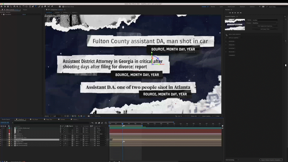 The result is a design ecosystem with fully automated lower thirds that populate from a text file as well as charts, world and us maps, and other complex graphics that can be designed and rendered within minutes.